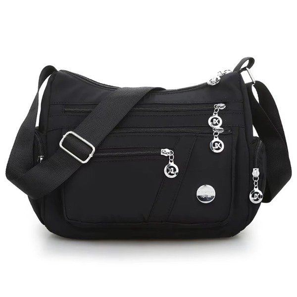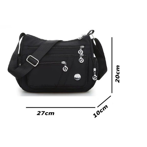 Su diseño práctico y moderno con múltiples compartimentos con cierres te permite organizar todo lo que necesitás: celular, billetera, llaves, cosméticos y más.