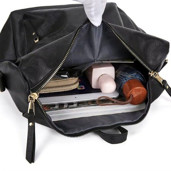 Su interior amplio y bien distribuido permite guardar celular, billetera, maquillaje, tablet y todo lo que necesitás durante la jornada.